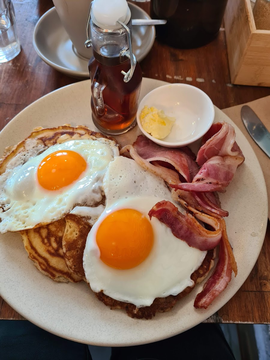 The menu here is delightfully versatile. Breakfast lovers will find themselves drawn to the Canadian Pancakes, stacked high and drizzled with maple syrup, offering a sweet and comforting start to the day. For those craving something hearty and savory, the Mushroom Mix Up is a standout, packed with fresh, earthy mushrooms and perfectly seasoned, making each bite satisfying and rich in flavor. Health-conscious patrons can’t go past the Muesli, a refreshing combination of crunchy oats, nuts, and fresh fruits that pairs wonderfully with the café’s smooth Chai.